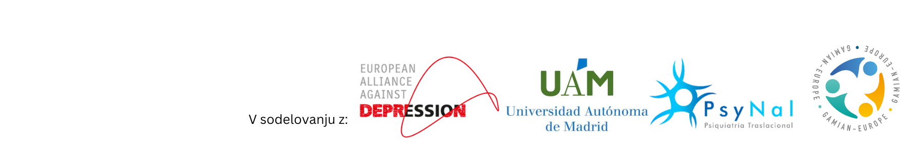 - partnerske organizacije: Estonian-Swedish Mental Health and Suicidology Institute, Estonia; London School of Economics and Political Science, Združeno kraljestvo; KU Leuven, Belgija; Netherlands Institute of Mental Health and Addiction, Nizozemska; University of Stirling, Združeno kraljestvo; National suicide research foundation, Irska; Semmelweis University, Madžarska; Institut za varovanje zdravja RS, Slovenija; NOVA Medical School, NOVA University Lisbon, Portugalska; Univerza na Primorskem, Slovenija; GABO:MI Gesellschaft fur Ablauforganisation: Milliarium MBH& CO KG; Nemčija; Gesellschaft fuer Psychische Gesundheit – Pro Mente Tirol, Avstrija; Universitaetsklinikum Wuerzburg – Klinikum der Bayerischen Julius-Maximilians-Universitat, Nemčija